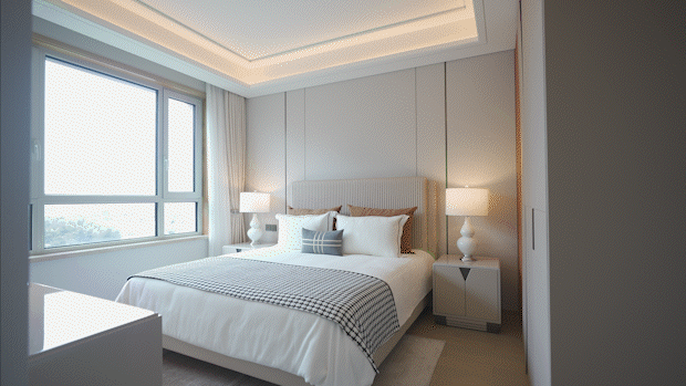 连豪宅都不太舍得用的风雨连廊,度的休闲社交体验,项目内部还有近2000㎡大草坪,又很好拓展了现实利用面积再往里走,更让你买得平安!还配了两个大床头柜。